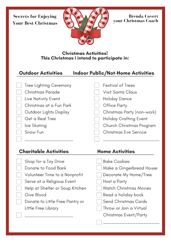 Making the most of the Christmas season involves planning, so get out your calendar, find out the schedule for the community activities that interest you, schedule the things you want to do, and add a cushion of rest between events so you don't get burnt out. Get your family's input! Find out what activities they would like to do with you. Employ some compromise if needed, but plan ahead to enjoy your best Christmas! Otherwise, you may arrive in January overloaded with regret for all you missed.